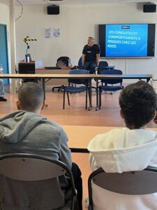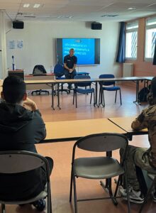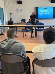 Le Major DETKO, officier de prévention de la police anime des actions de prévention dans les écoles pour sensibiliser les élèves sur la problématique des conduites à risques. Il est intervenu, la semaine dernière, auprès des classes entrantes autour de l’usage des réseaux, d’internet et des téléphones portables.